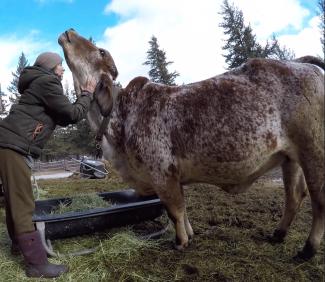 She was at the bottom of the herd's food chain which means that sometimes Gauri had to wait for permission from the others before she was allowed to join them at the feed trough. She seemed to understand and accept her position. She was not at all shy however, when it comes to accepting treats from humans.