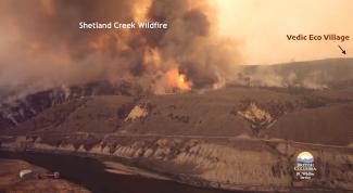A wildfire which measured over 200 square kilometres burned more than 20 structures in the Venables Valley, including at least six homes. Vedic Eco Village homes were untouched, but the library and books were destroyed. The Saranagati temple, goshala, and school are ok.