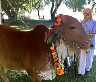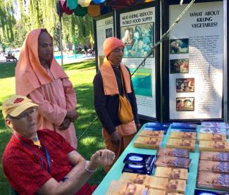 The Festival of India appeared for the first time in Kamloops and was co-managed by Saranagati Village residents.  A special guest appearance was made by Surabhi cow.  Our Brahmacharies led kirtan and helped distribute books.