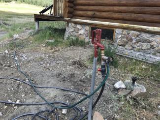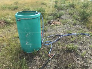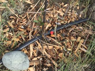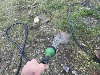As one can see from the photos, we have attached hoses to all the hydrants. With a long garden hose that we use for watering both the poplar trees and the strawberry patch, one can actually have hot water naturally heated by solar power during the day. Now that they are getting water in abundance, our poplar trees are responding by producing leaves and small branches.
