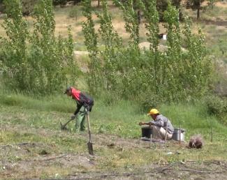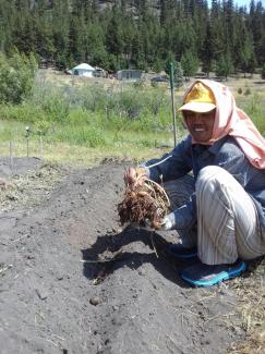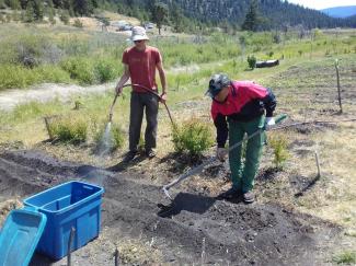 We planted potatoes in the garden and started to transplant seedlings from the greenhouse.  Since the weather is getting very hot (35+ degrees Celsius), watering is very important at this time.  Drip lines are being extended, as this is the best way to water in hot times.