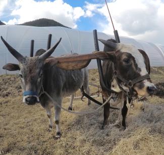 This spring we continued ox plowing our fields with great success. Daivata prabhu renovated an old plow he found and it works great to turn over sod. Each year the ox team is improving our technique and we are learning the right time to plow for the soil condition. The oxen are getting stronger and have a better feel about when to pull harder. We have been plowing gardens all over Saranagati Village, inspiring people to use this ancient and sustainable method of soil preparation.
