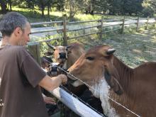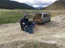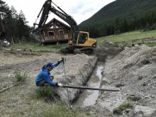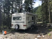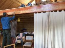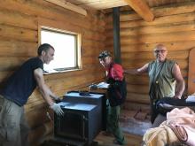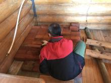 Our two devotees from Indonesia, Kisora Krsna prabhu and Danavir prabhu, arrived in Vancouver on Thursday June 22nd and after spending that day at the ISKCON Burnaby temple took a bus to Cache Creek where Ramanath prabhu picked them up. They were shown to their new residence, a trailer conveniently placed near the log cabin. The very next day they were helping with some of the renovations taking place in the log cabin. The renovations included taking out the old bathtub (must have weighed 200 pounds or more) and shifting the wooden stove from its the south-west of the cabin to the south-east of the cabin. By the end of the day the yajna was completed and the devotees could finally rearrange the interior to give it more of a temple atmosphere.